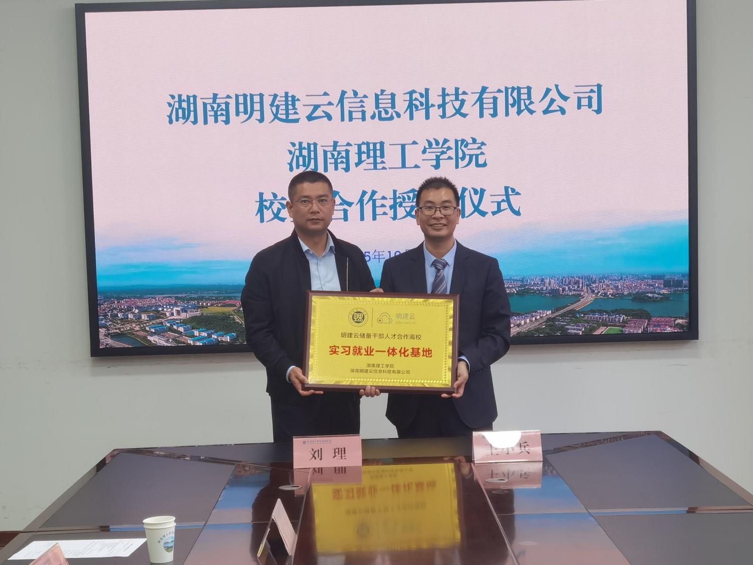 为深化产教融合,打通学生从校园到职场的“最后一公里”,10月31日,湖南理工学院、湖南理工学院南湖学院分别与湖南明建云信息科技有限公司(以下简称“明建云”)隆重举行实习就业一体化基地签约暨挂牌仪式。此次合作标志着校企双方在协同育人方面迈出了坚实一步,为湖理学子搭建起一座直通优质岗位的桥梁。