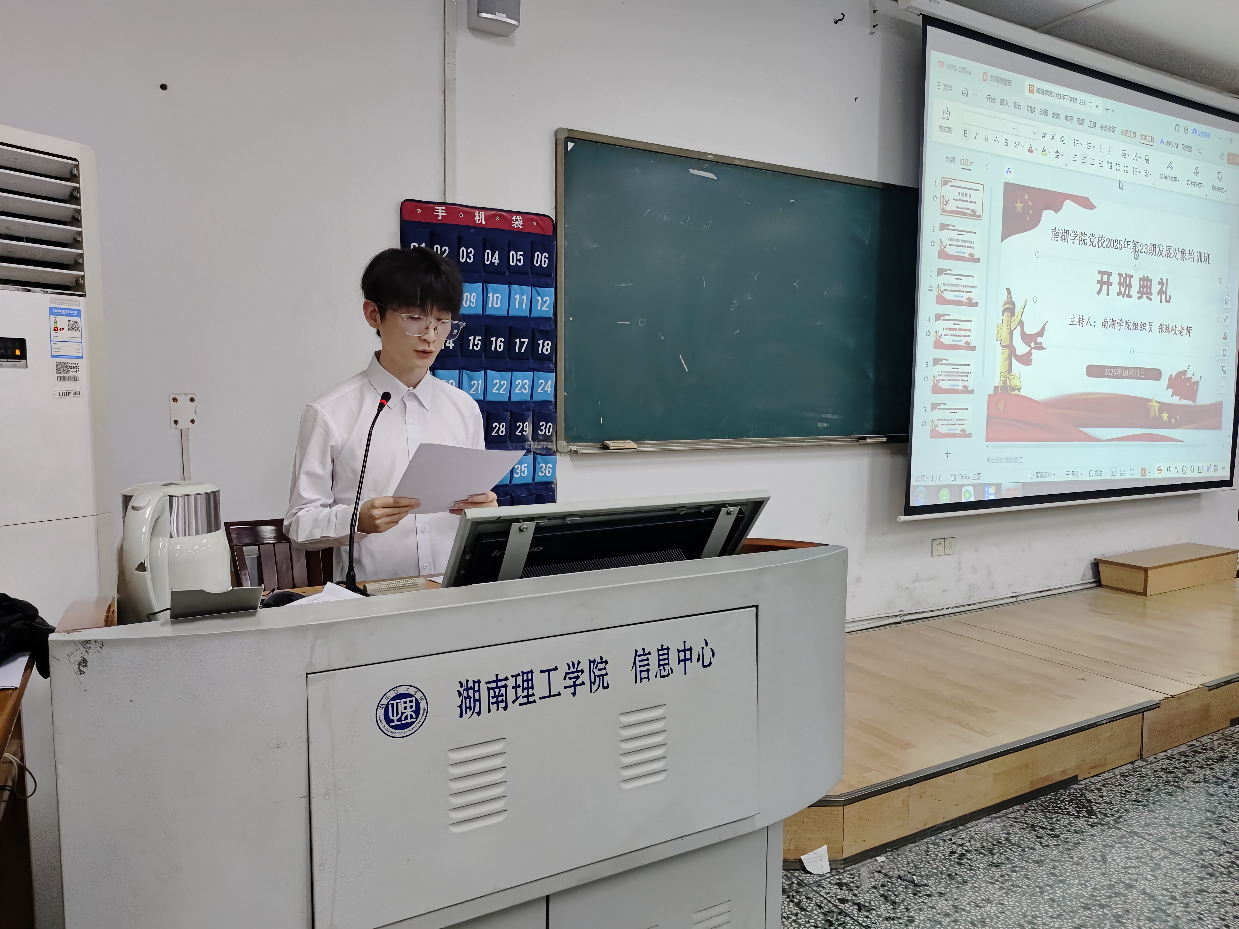 为扎实推进党员发展工作,严把党员入口关,强化发展对象的党性修养与理论素养,根据学校党委组织部党校统一部署,10 月 23 日晚 7 时,南湖学院第 23 期发展对象培训班开班仪式在 2205 教室隆重举行。南湖学院党委书记李革新、组织员张殊岐与 96 名发展对象齐聚一堂,共同开启一场深刻的思想洗礼与严格的党性锤炼之旅。开班仪式由张殊岐主持。