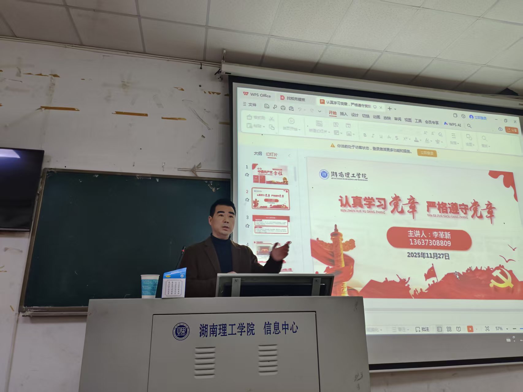为深入学习贯彻习近平新时代中国特色社会主义思想,加强入党积极分子党性修养,引导学员自觉学习党章、遵守党章、贯彻党章、维护党章,11月27日晚,南湖学院入党积极分子培训班第四次专题党课在东院二教2T3教室如期举行。学院党委书记李革新以《认真学习党章,严格遵守党章》为题,为全体学员讲授了一堂兼具理论深度与实践温度的专题党课。
