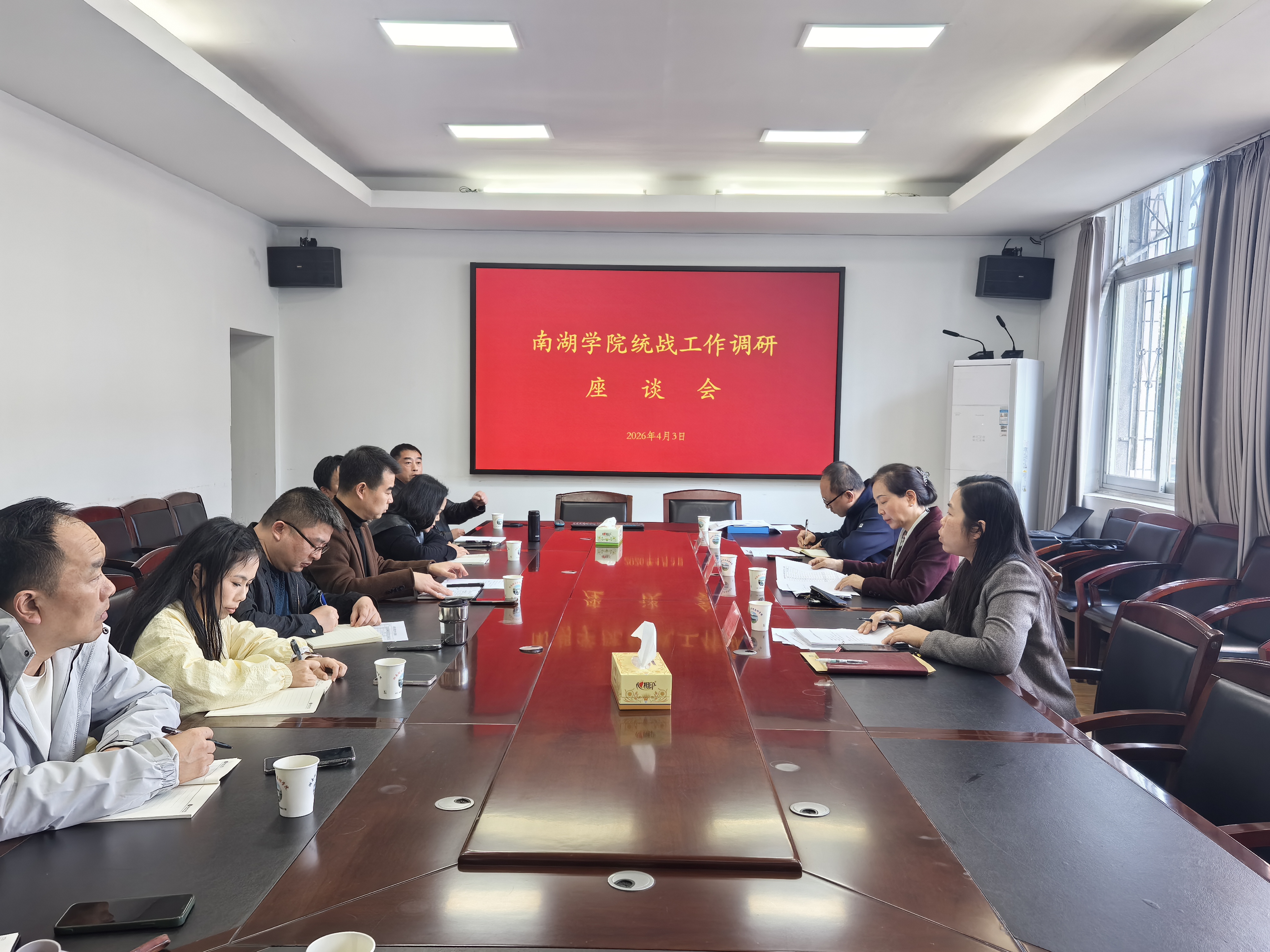 为深入贯彻落实新时代党的统一战线工作要求,精准掌握二级学院统战工作开展实情,近日,校党委副书记徐小立一行专程莅临南湖学院,专题调研指导学院统一战线工作。学校统战部相关负责人陪同调研,南湖学院党委负责人、统战委员、分管学生工作副书记及学院相关工作人员参加调研座谈,座谈会由校党委统战部常务副部长向江主持。