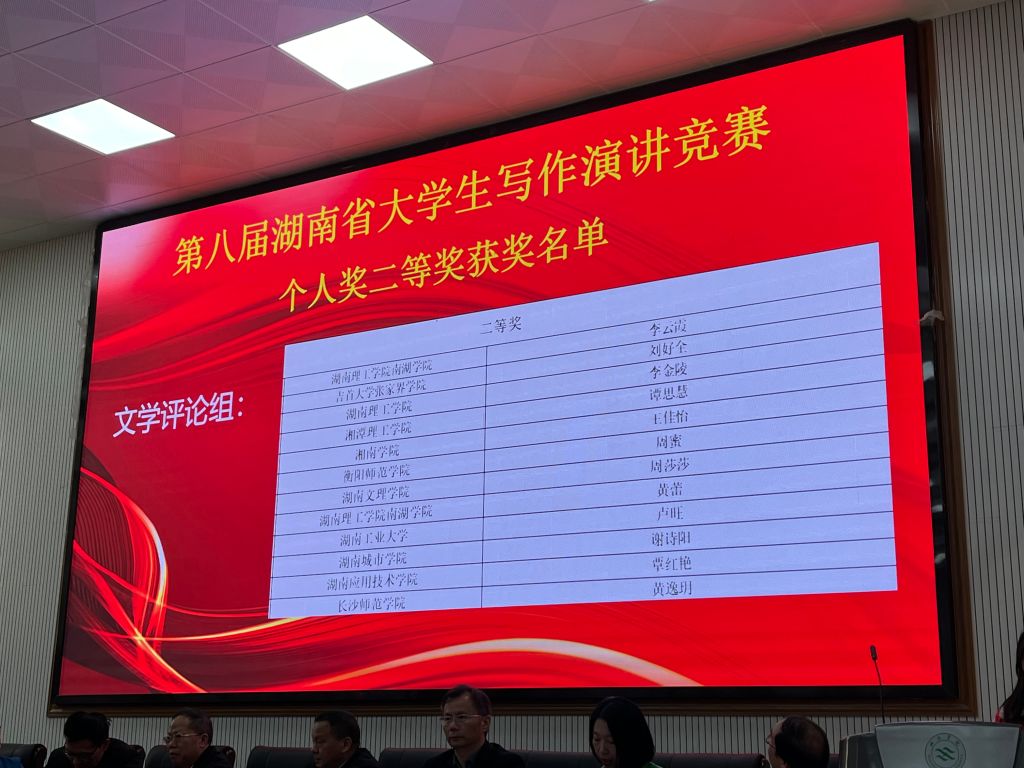 南湖学院学生在第八届湖南省大学生写作演讲大赛中喜获佳绩