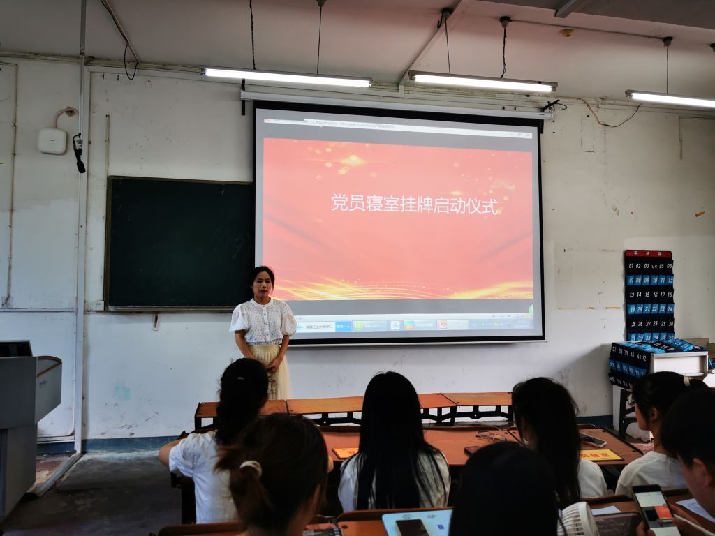 刘青姗在会上指出,举行党员寝室挂牌仪式,就是让党员同学们更加清晰自己肩上的责任,不断提高思想政治觉悟,认真学习、努力工作、内强素质、外树形象,真正做到“亮身份,明责任,做标杆”,争做合格的共产党员。同时,她向与会党员提出三点建议和希望,一是要牢记入党誓言,在实践中不断完善发展自己,在力所能及的范围内发光发热,不辜负学院和系部的栽培;二是牢记入党动机,坚持学习马克思主义理论,践行社会主义核心价值观,展示“最好的自己”;三是亮明身份,严于律己,服务同学,在寝室卫生、寝室团结、寝室安全、寝室学风中发挥党员作用。