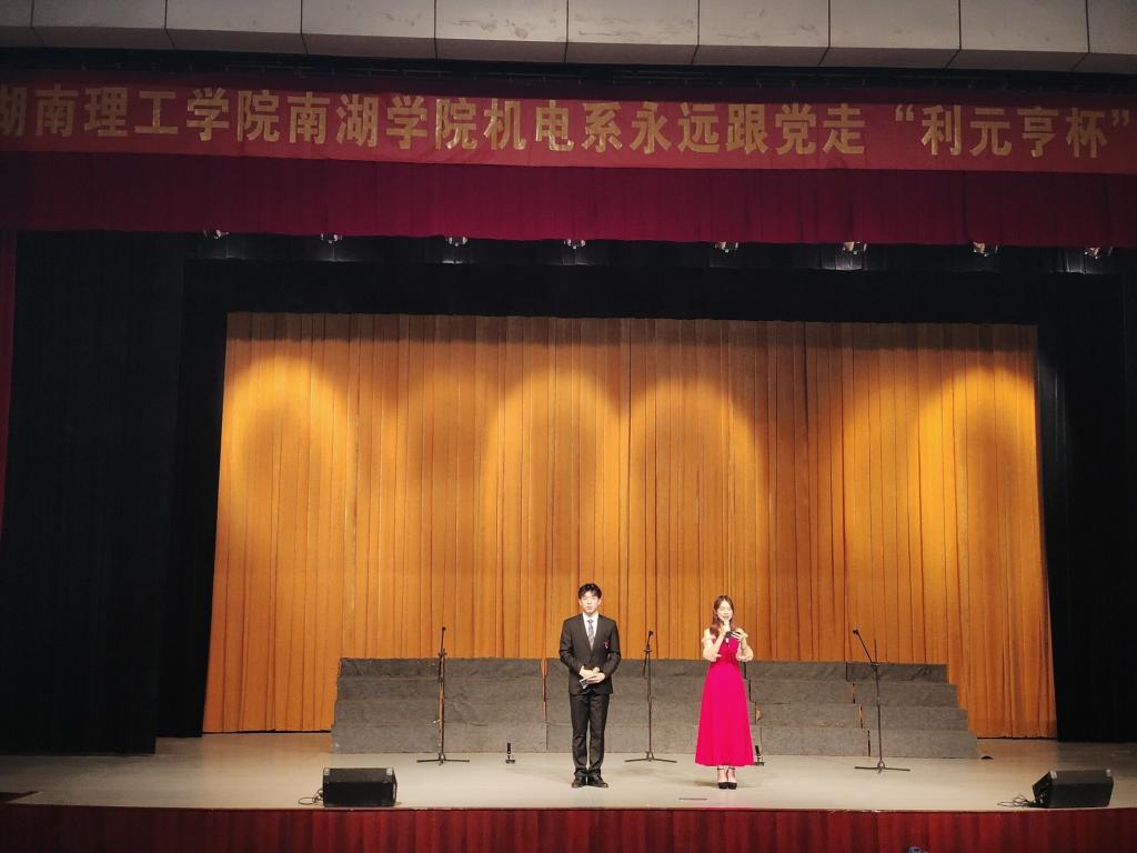机电系于6月16日晚上7:30,在东院演播厅开展了湖南理工学院南湖学院机电系永远跟党走“利元亨杯”歌咏比赛决赛。南湖学院党委书记柳周峰,中国音乐家协会会员、岳阳市音乐家协会名誉副主席、湖南理工学院音乐学院声乐教授王俊,岳阳市云梦艺术学校校长毛秋文,湖南理工学院组织部张娟,南湖学院外贸系辅导员余瑜,南湖学院机电系党总支书记喻立平为本次比赛的评委。岳阳联通公司的校园经理龙姿伶以及参赛班级的班主任都来到本次比赛的现场。