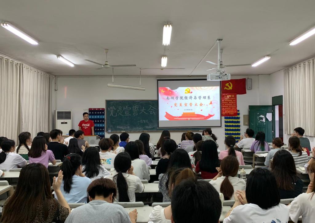 6月15日晚19:00,经管系在2号楼2411教室开展党史学习教育暨2021年上学期党员宣誓大会。南湖学院院长彭平锋出席会议并向经管系全体党员讲专题党课。经管系党总支书记齐亮菲及系全体党员师生参加本次会议。