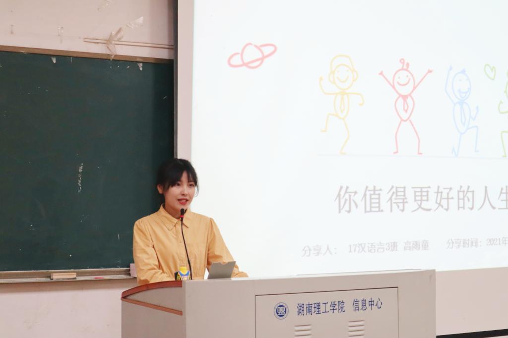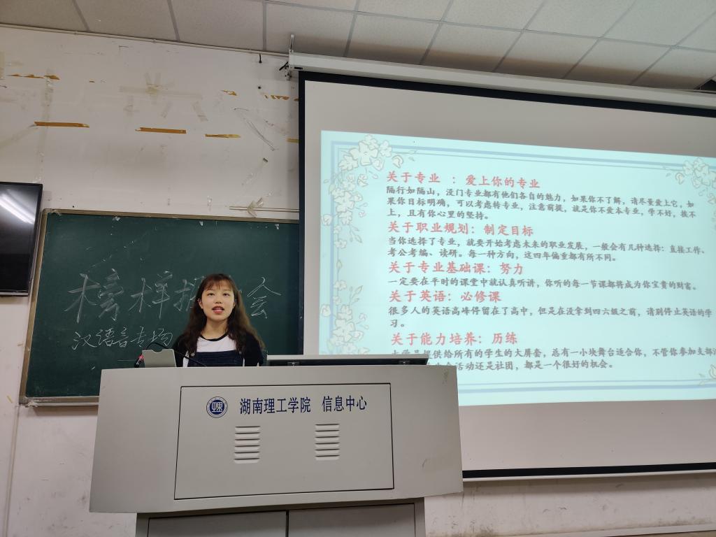 会议伊始,19级优秀学生代表单紫娟作榜样事迹报告会。她结合个人获奖经历,由浅入深地论述了课程学习、专业学习、湖南省大学生写作竞赛这三个方面所需注意的事项和具体方法。随后,17级李佳敏分享考研经验。她希望大家积极调整心态,认真学好基础知识,正确运用学习方法并且时刻坚定考研信念,争取在学业上获得优异成绩。17级高雨童着重强调了学习中勤奋、方法、心态、效率的重要性,她还认为汉语言文学专业学生必须具备能说会写懂行这三大素质,并且希望同学们在大学生涯中学会尝试、学会交流、学会做事,不断提高个人综合素质和核心素养。最后,贺青老师作总结发言。她首先对三位发言代表的报告表示肯定,同时希望同学们扎实学好基础知识,认真借鉴考研学生代表的经验教训,促使自身朝着更远更高处发展。