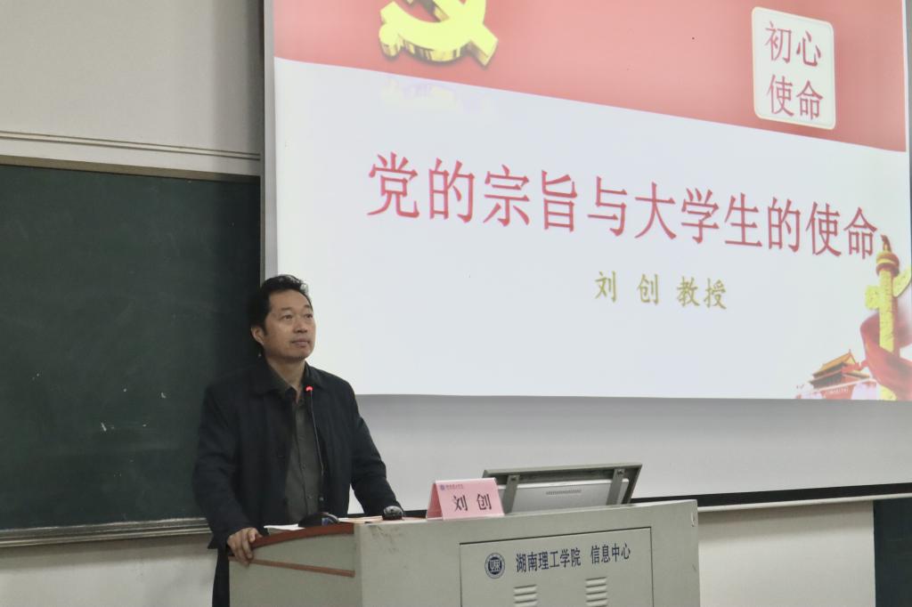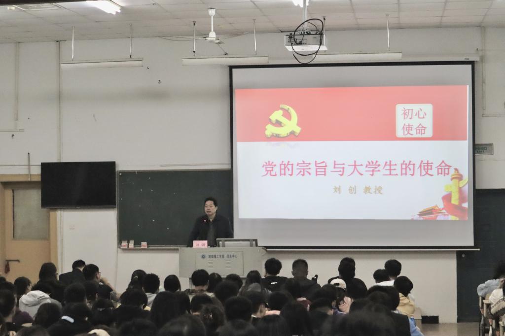 刘创作了题为《党的宗旨与大学生使命》的辅导报告。他围绕党的宗旨和新时代大学生的使命担当等两个方面的内容,着眼于近代中国发展史实和当前复杂多变的国际、国内形势,结合大量事例,给同学们上了一堂既有较强的理论深度又有实践指导意义的专题党课。讲座最后,他以前国务院总理朱镕基考察岳阳时寄语我院学生:“好好学习,报效祖国”为结束语,希望全体学员牢记先辈嘱托,进一步坚定理想信念,努力学习,勇于实践,自觉承担新时代的历史使命,不忘初心,为实现中华民族伟大复兴的中国梦不懈奋斗。