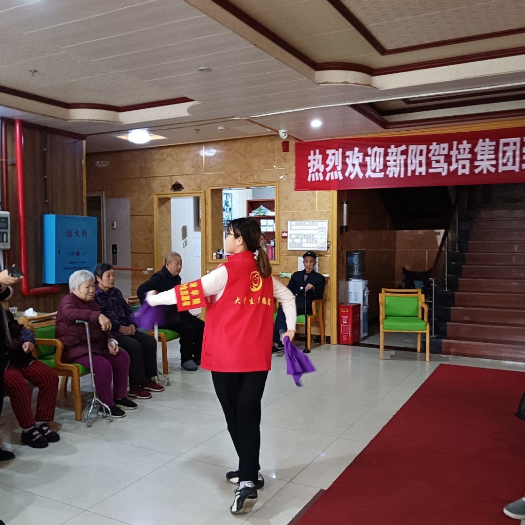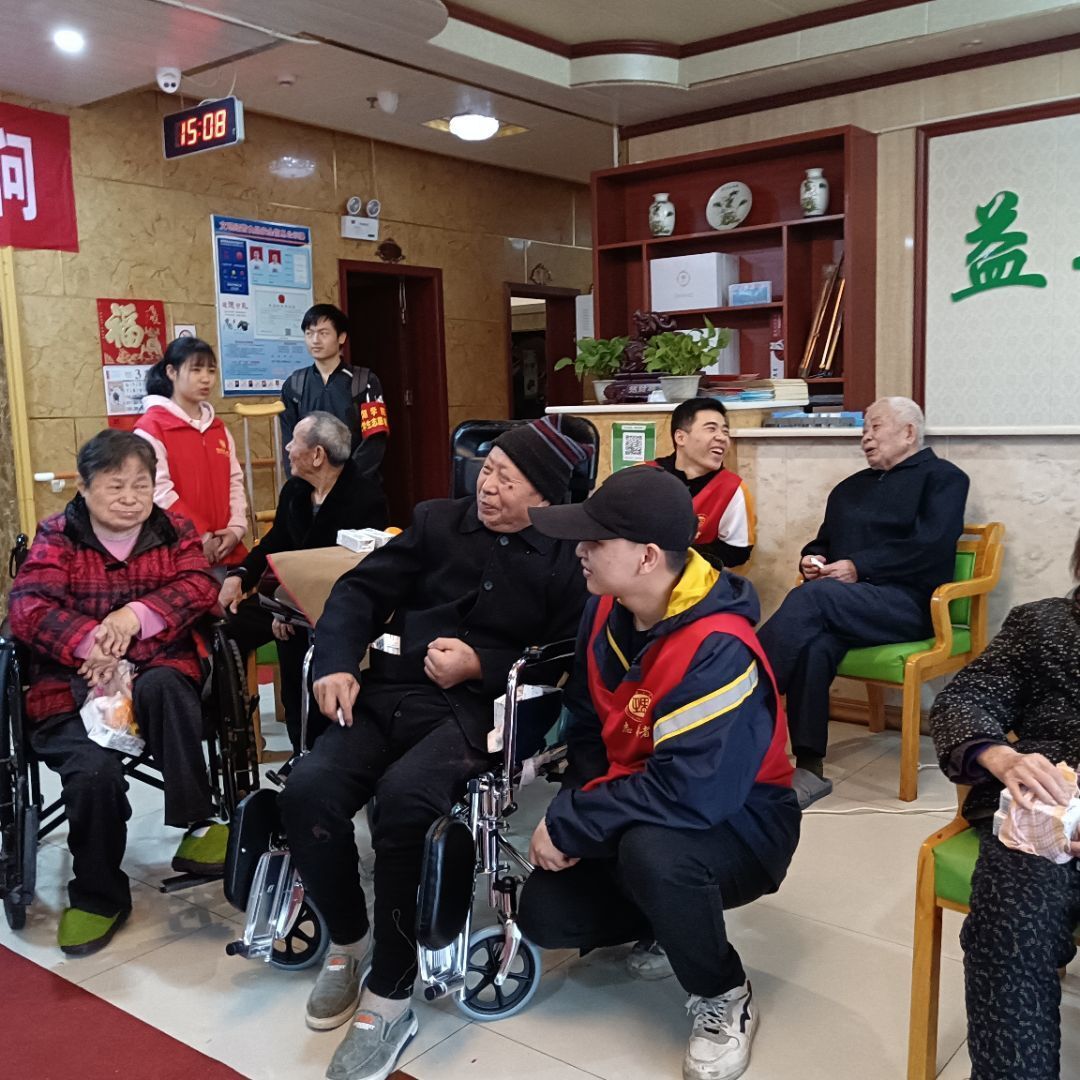 在社长何文科的带领下,志愿者们走进养老院向老人们问好老人们面对志愿者们的到来也都洋溢着开心的笑容。随后养老院院长带领志愿者们一起参观了老人们的住所并向志愿者介绍了老人们的身体状况及老人们的日常起居。接着志愿者向老人们表演了提前准备的三个节目,节目有弹奏乐器歌曲演唱舞蹈表演,看完表演的老人们开心地鼓起了掌。最后志愿者们为所有老人都送上了牛奶和水果,并同老人们唠起了家常养老院里充满了欢声笑语,其乐融融。