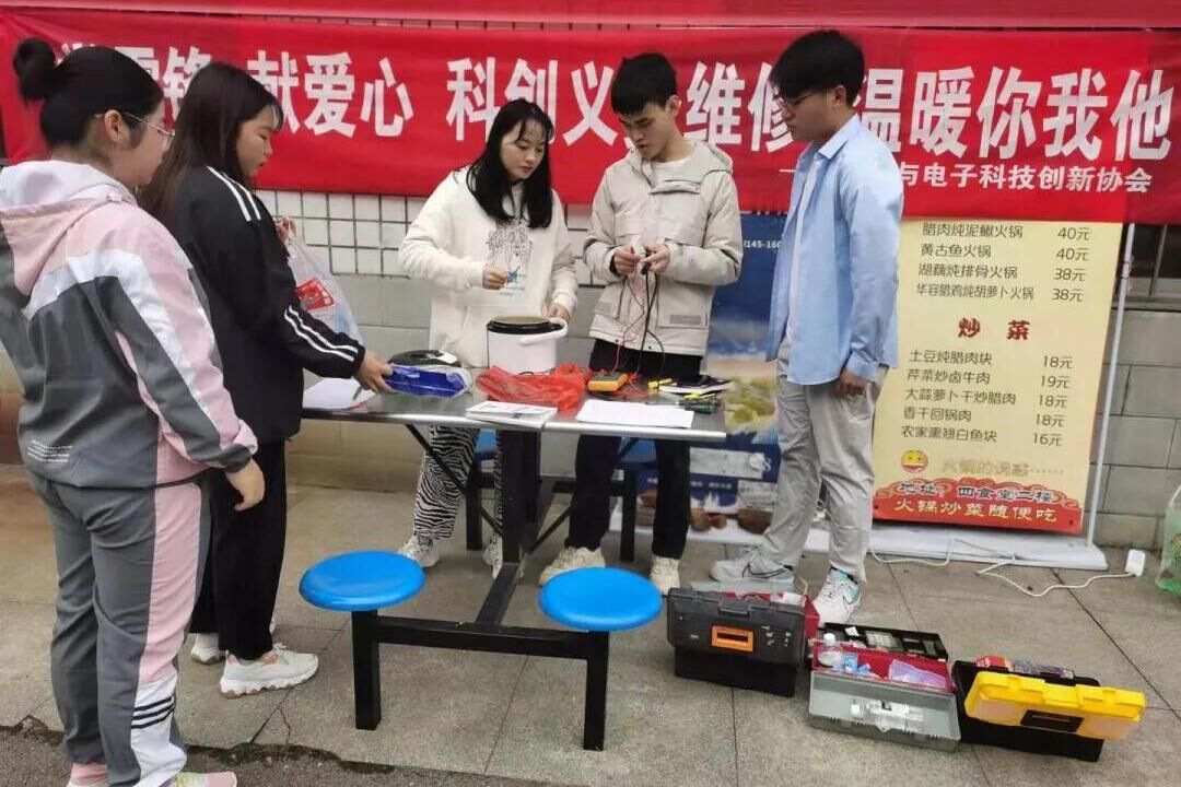 3月中旬,科创社团在北院四食堂旁边开展了学习雷锋精神义务维修活动,科创义务维修团队以“赠人玫瑰,手留余香”为服务宗旨,免费维修各种家电。本次义务维修活动进行了三天,一共接受了北院居民二十三件电器,其中有四个电风扇,三个电烤炉,六个电饭煲,五个热水壶,一个电子手表,两盏台灯,一个玩具狗,一个剃须刀,在科创成员们的共同努力下共修好了9件电器。虽然修复率不高,但是科创成员们吃苦耐劳的精神是值得肯定的。