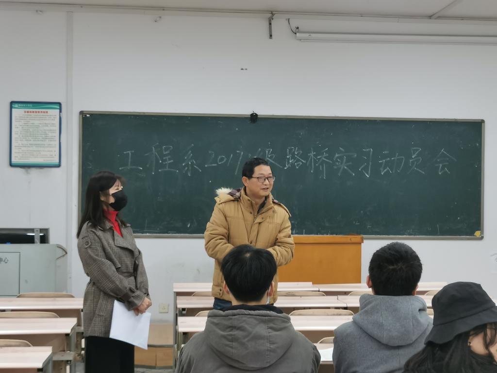 2020年11月27日上午10点,工程系2017级土木专业(路桥方向)学生实习动员会在2206召开,系主任李斌、系党总支副书记张殊岐、土建学院罗华博士、2017级辅导员助理刘骞以及全体17级路桥方向同学与会。