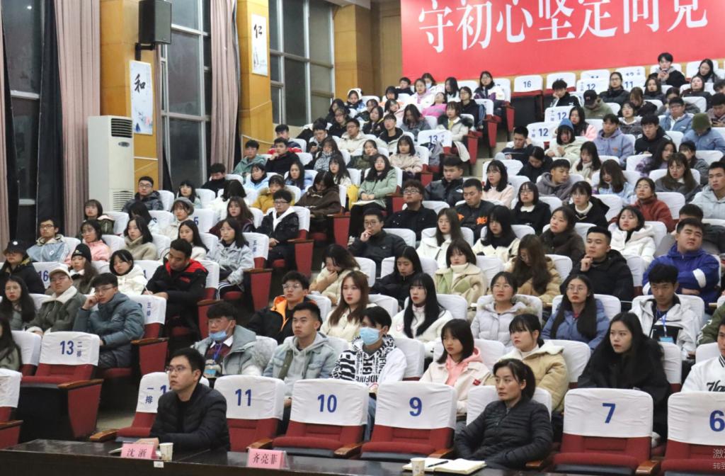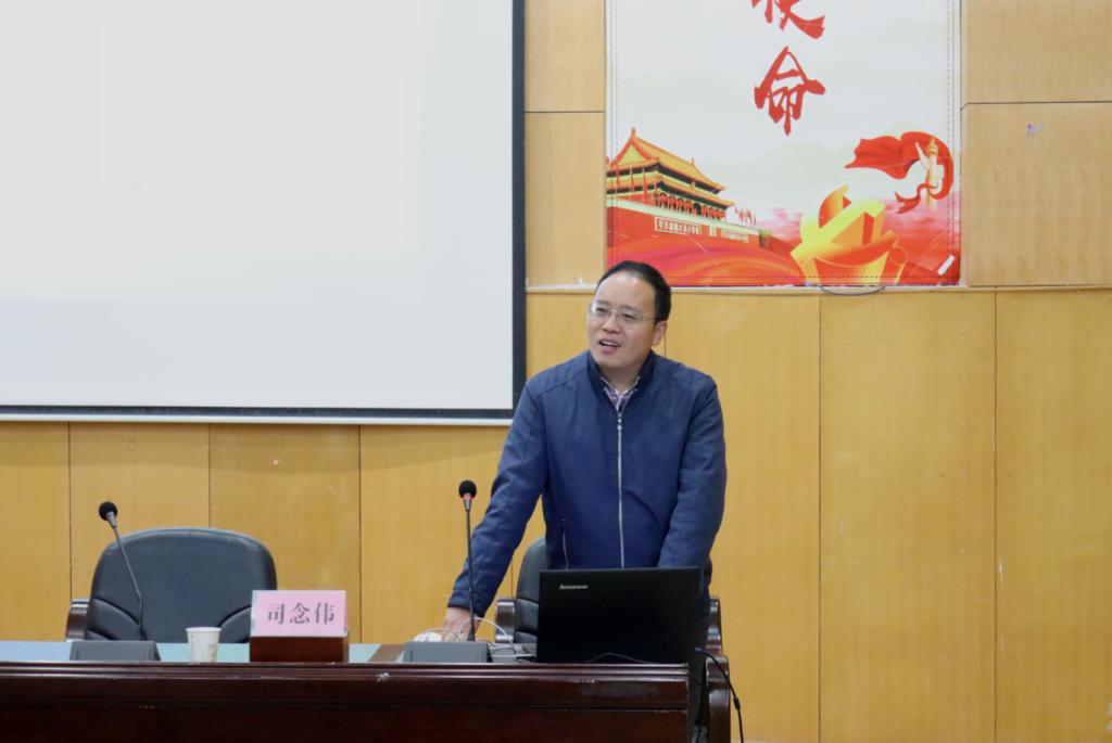 1124日晚7点,经管系在综合楼学术报告厅举办2020年“青马工程”培训班。本次培训班特邀学校党委宣传部副部长司念伟担任第一期主讲。经管系党总支书记齐亮菲以及全系209名学生干部代表出席。会议由经管系团总支书记沈浙主持。