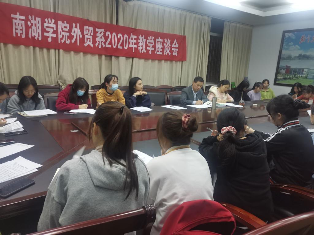 为进一步推动学风建设,增进师生沟通与交流,提高教师教学效果和学生学习效果,11月10日上午和11月11日晚上,外贸系在学院1221会议室分两次召开2020年下学期教学座谈会,会议由系主任毛新耕主持、教学秘书杨慧荣、夏宇、辅导员余瑜与大一至大四全体教信委员和学生代表参加座谈会。