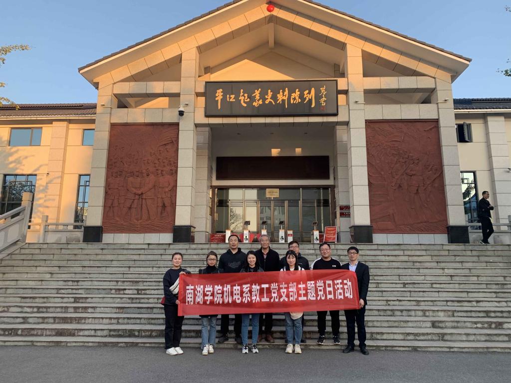 1114日,南湖学院机电系教工党支部开展了“铭记历史,不忘初心”主题教育党日活动。机电系教工一行人前往平江,参观了平江起义旧址、彭德怀铜像广场及平江起义史料陈列馆。