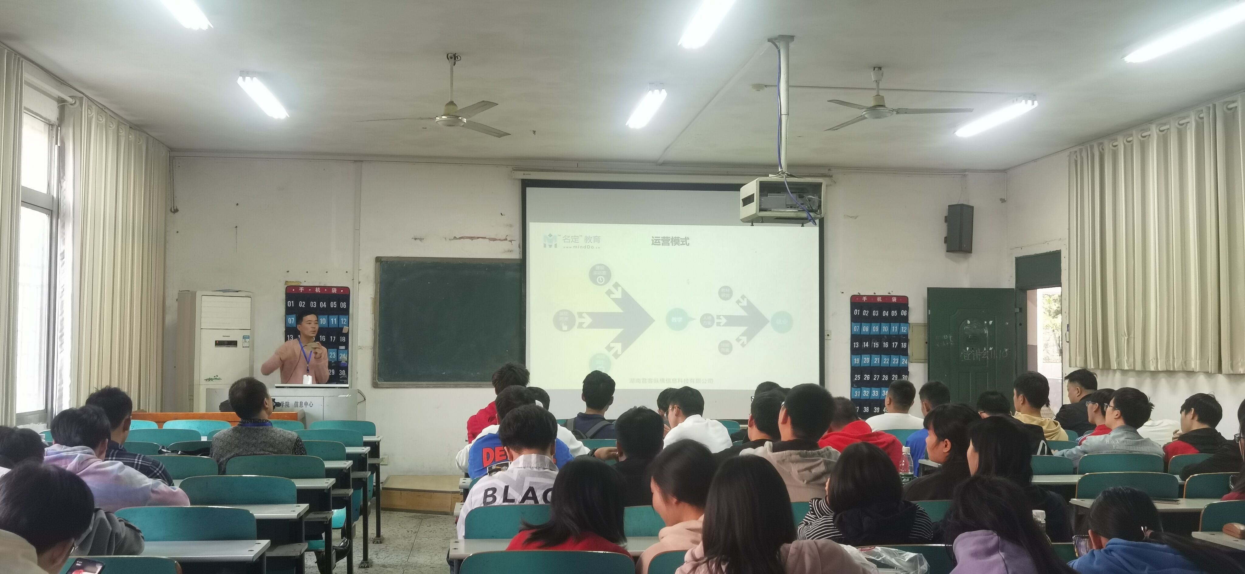 宣讲会由机电系2021届就业专干张雄飞老师主持,湖南君客纵横科技有限公司宣讲负责人吴荣经理向2021届毕业生介绍了其旗下名定教育的运营模式、招聘需求以及薪资待遇等。名定教育秉承“知行合一,修己达人”的教育理念,致力于培养双优人才。