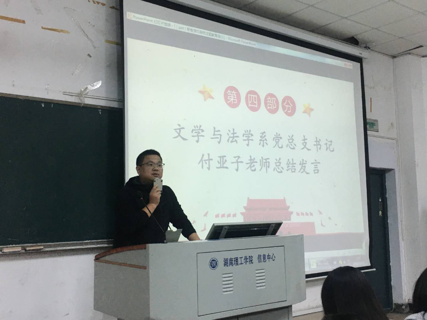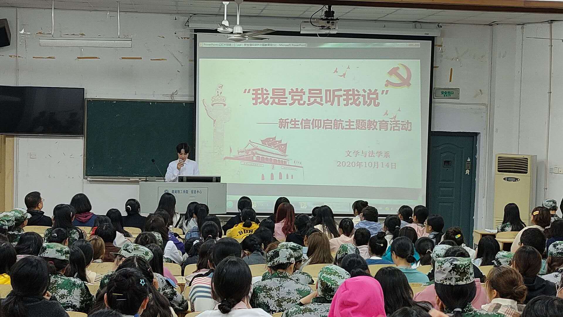 1014日,文法系在2号楼2T2教室举办“我是党员听我说”新生信仰启航主题活动。文法系党总支书记付亚子,副书记贺青出席活动,17级汉语言三班胡郑潘、汉语言四班刘晴、王雨欣和全体20级新生参加此次活动。