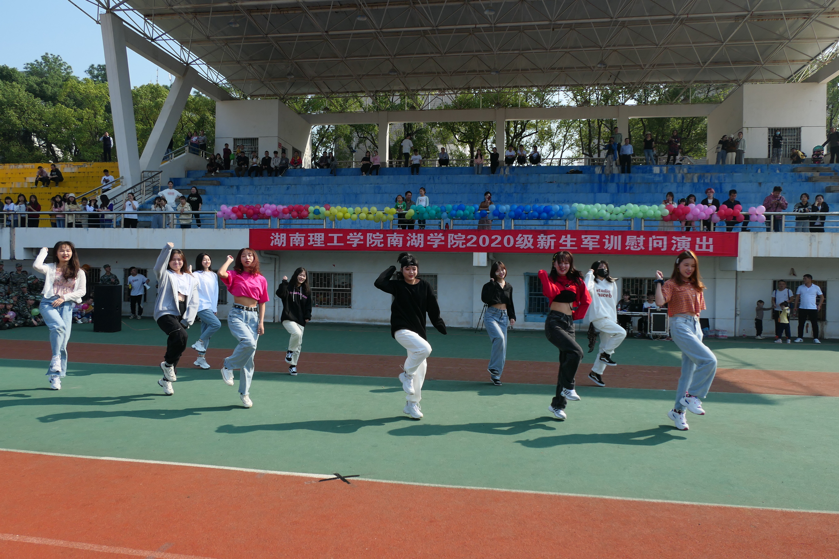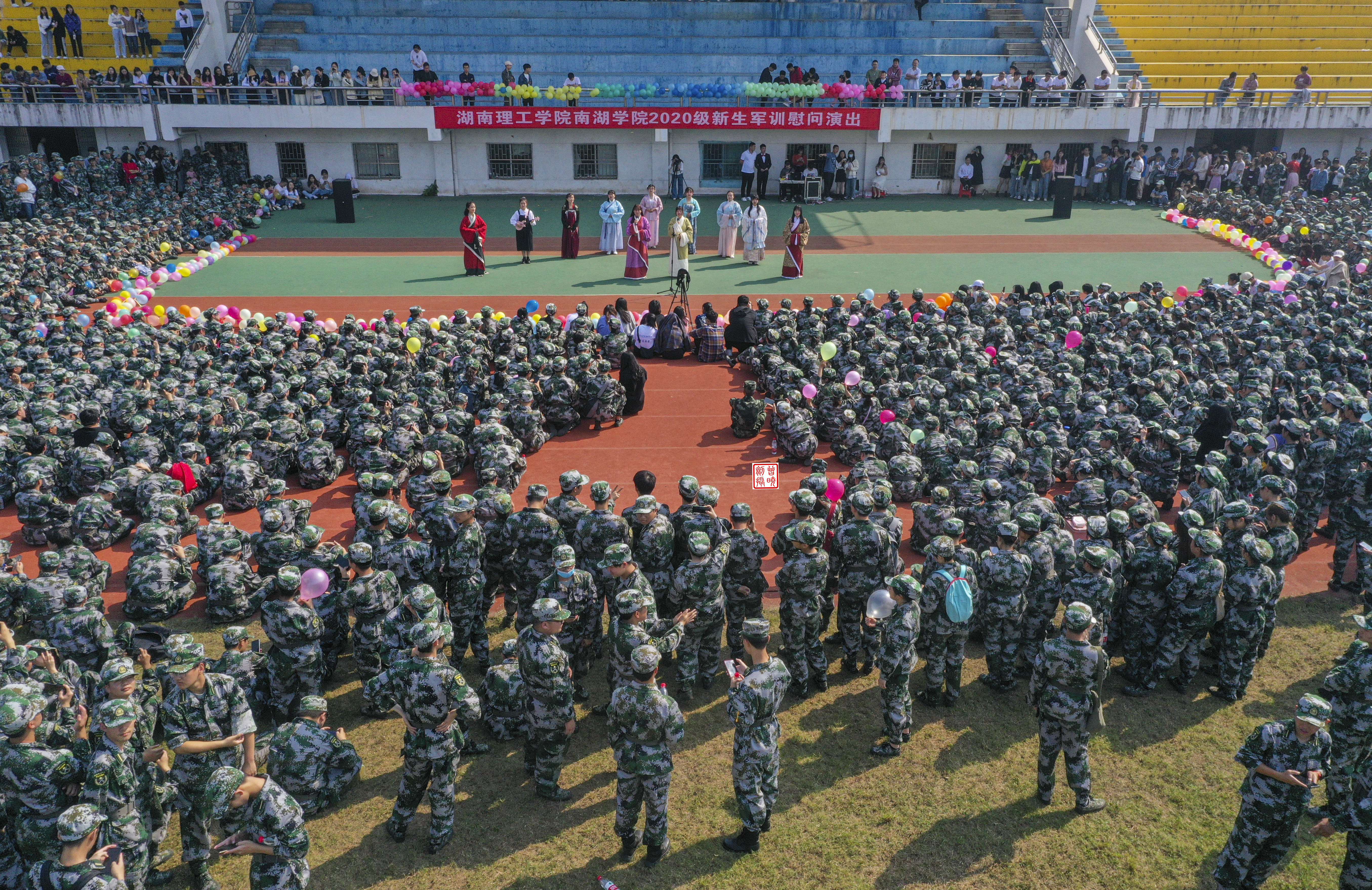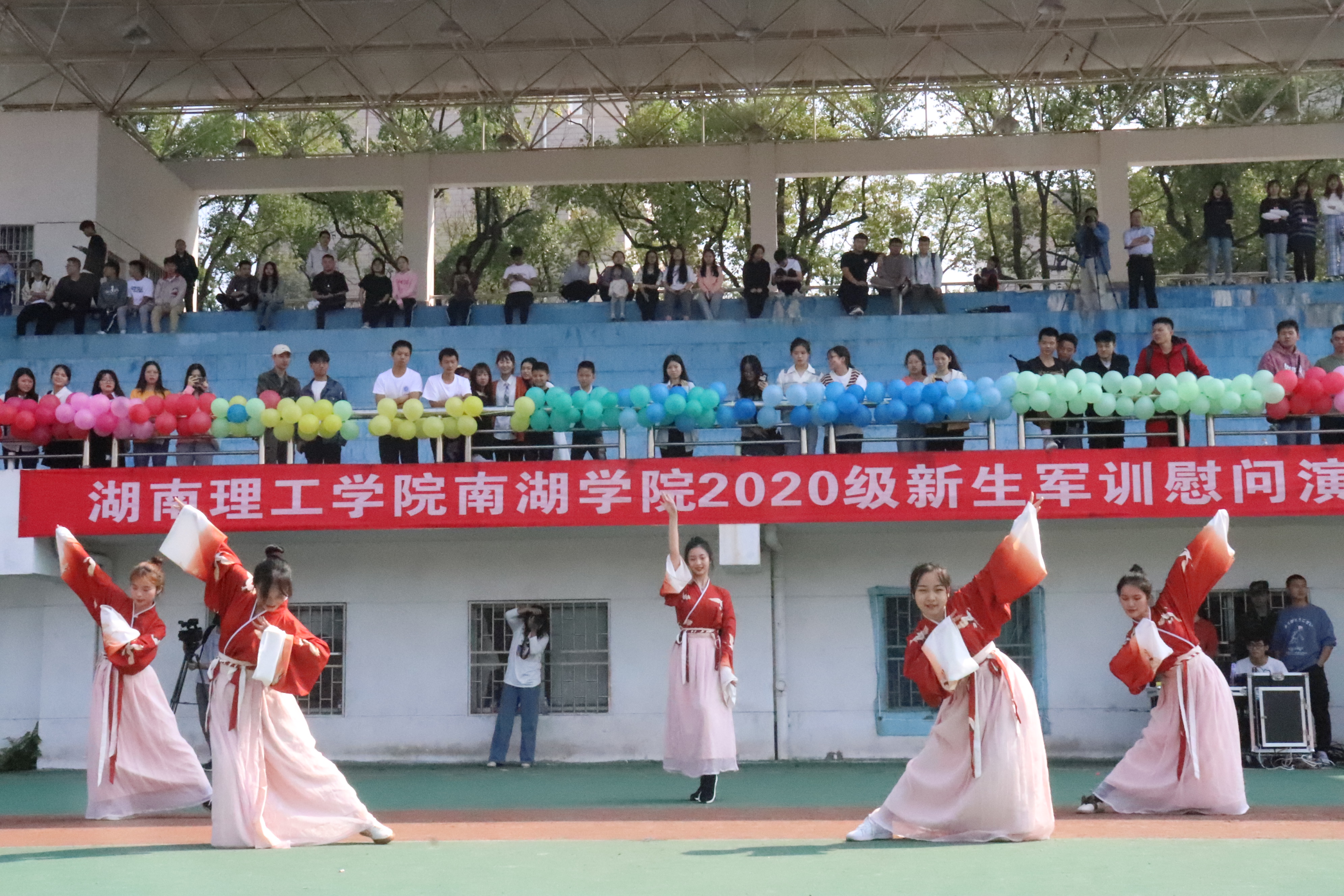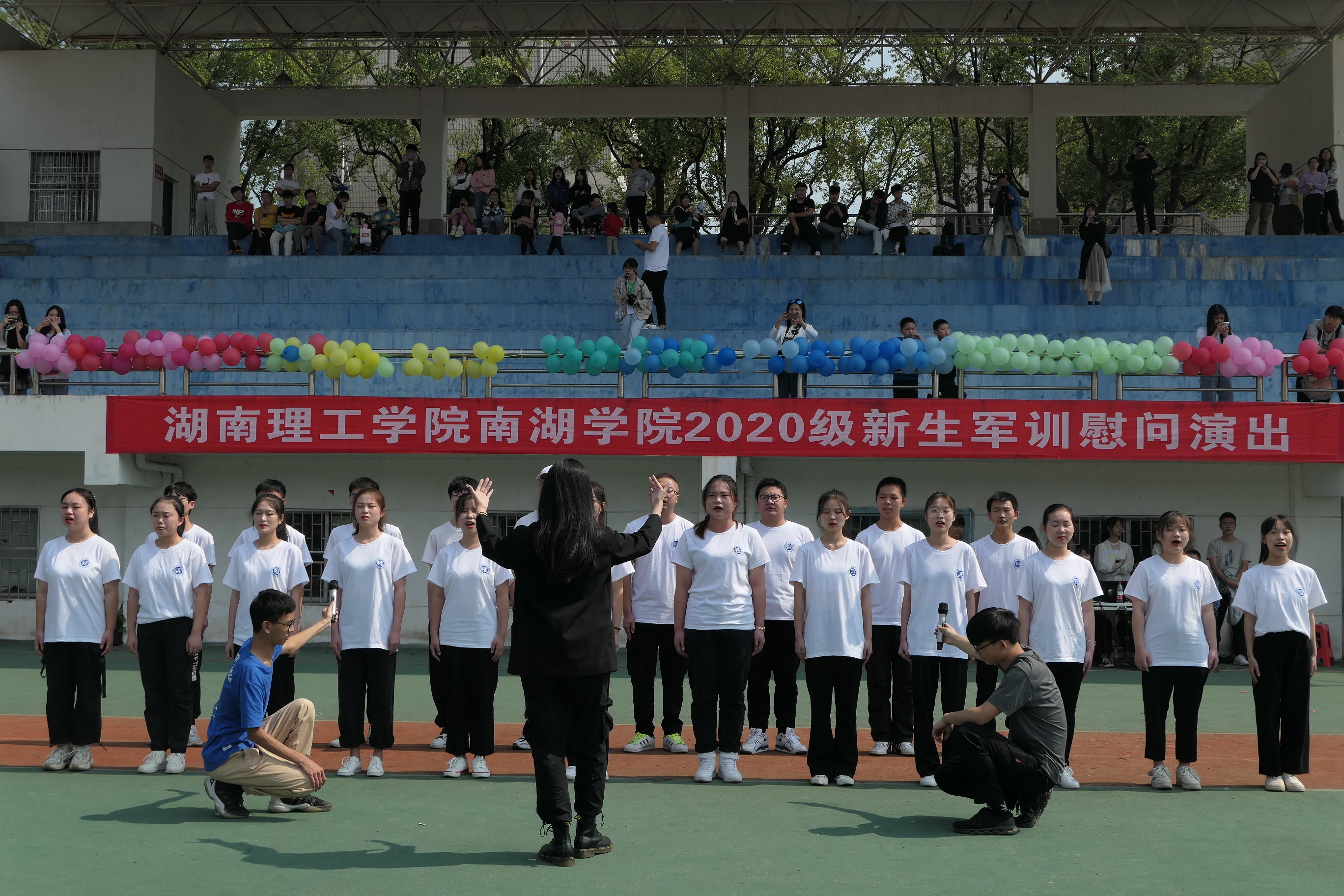 为了丰富2020级新生军训生活,10月11日上午10点,南湖学院艺术团及社团成员来到东院田径场,为正在军训的教官和2020级新生献上了一场精彩的慰问演出。院、系相关负责人、新生辅导员、助理班主任、军训教官及1600余名参训学员参加活动。