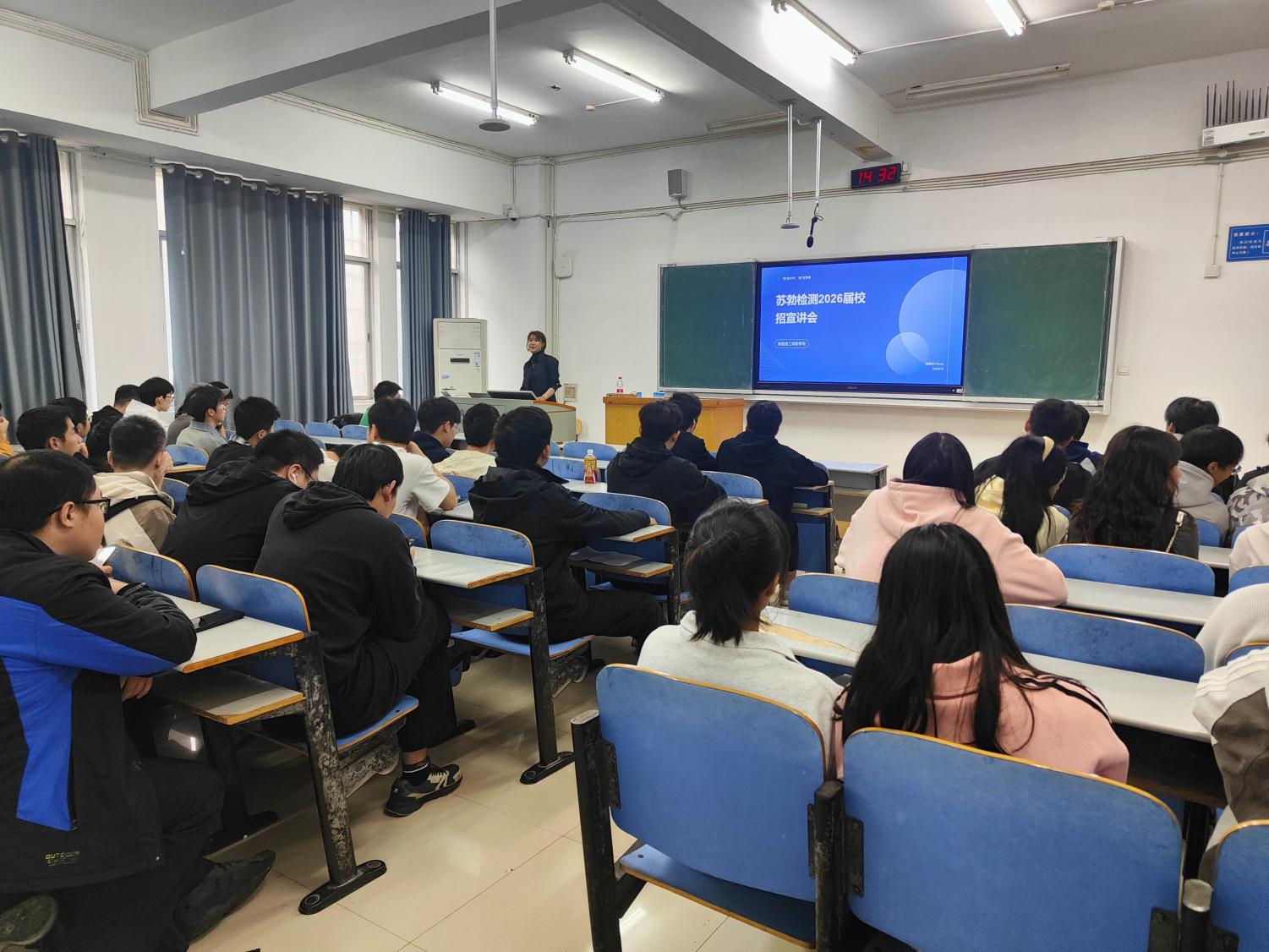 宣讲会伊始,企业招聘负责人通过一段宣传片向在场学生展示了苏勃检测的发展历程与技术实力。公司成立于2009年,总部位于苏州工业园区。苏勃检测在新能源零部件噪音检测领域首创BSR中的声学成像技术,填补了国内技术空白,如今已成长为国内领先的汽车智能化第三方质量保障解决方案提供商。随着介绍的深入,学生们了解到这家企业不仅拥有国家高新技术企业、江苏省专精特新中小企业等多项资质,更重要的是,其业务领域与系部机械设计制造及其自动化、电子信息工程以及机械电子工程多个专业的教学内容高度契合。