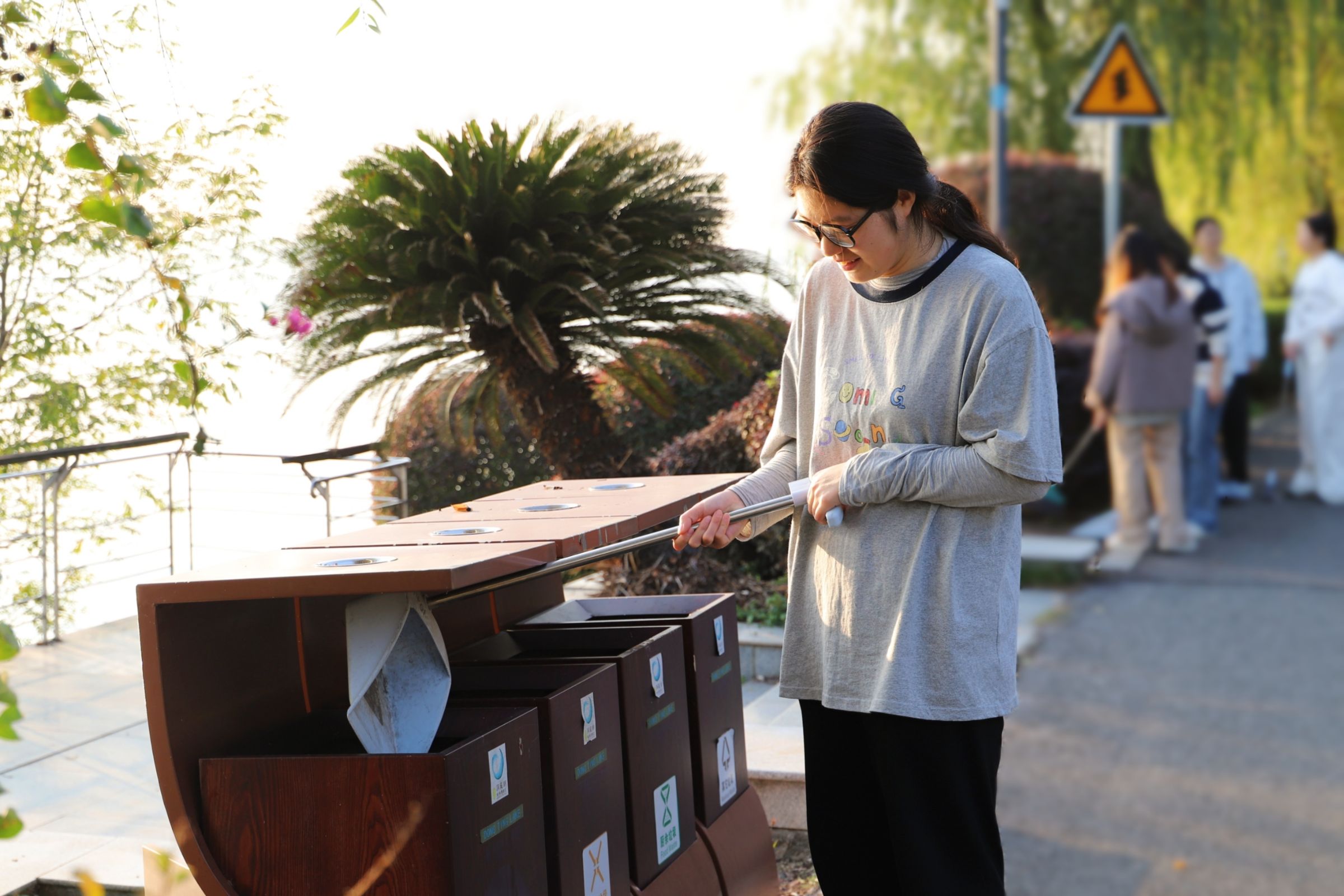 活动前,志愿者们先于二号教学楼大厅集合,由活动负责人给各组分发打扫工具并分配任务。下午16时,清扫活动正式开始,各组按划定区域展开行动。志愿者们手持劳动工具,细致清理落叶堆积的角落,俯身拾取草丛间的塑料包装、烟头等杂物,并对废弃瓶罐进行专项回收。秋风吹拂,涟漪轻漾,南湖绿化带旁跃动着的“红马甲”,成为校园中一抹亮丽的风景,传递着新时代的志愿服务精神。活动过程中,同学们默契协作,高效有序,充分展现了青年学子务实肯干、团结互助的精神风貌。