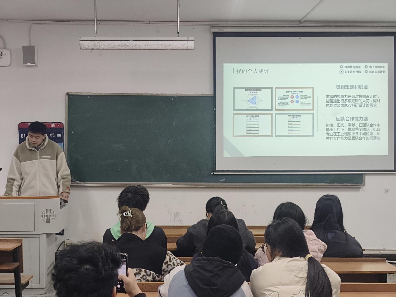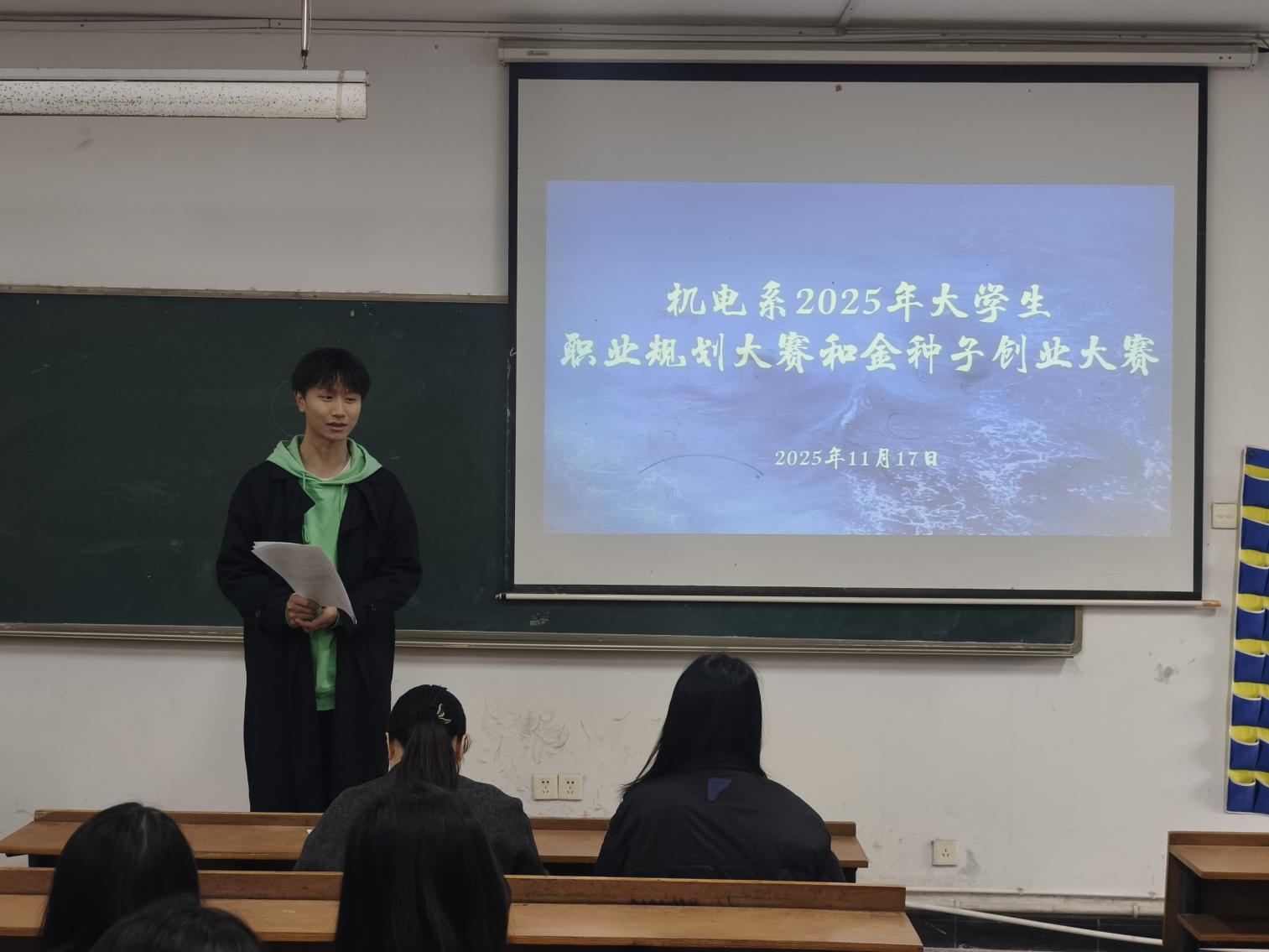 为深化机电系专业人才培养,搭建学生展示与实践交流平台,11月17日,南湖学院机电系举办的职业生涯规划大赛与“金种子”创新创业大赛系赛在2311教室圆满落下帷幕。来自机电系各年级的参赛选手同台竞技,充分展现了机电系学子清晰的职业发展思路、扎实的专业理论功底以及敢闯敢试的创新创业风采。各年级辅导员刘芬芬、王紫梦和彭添宝到场担任评委。