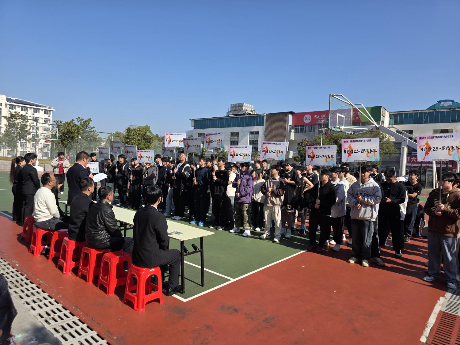 2025年11月24日正午时分,南湖学院机电系2025年“正大杯”迎新班级篮球赛在大俱篮球场正式开幕。本次赛事不仅是青春活力的竞技舞台,更是校企合作深度融合的生动体现。南湖学院党委书记李革新,副院长兼机电系主任蔡安辉、机电系党总支书记喻立平、机电系各年级辅导员和班主任齐聚现场。正大岳阳有限公司总经理李润、人事主管王雨婷和招聘经理刘添受邀出席,为赛事增添了浓厚的校企合作色彩。16支班级参赛队伍精神抖擞,整齐列队,展现机电学子昂扬向上的精神风貌。