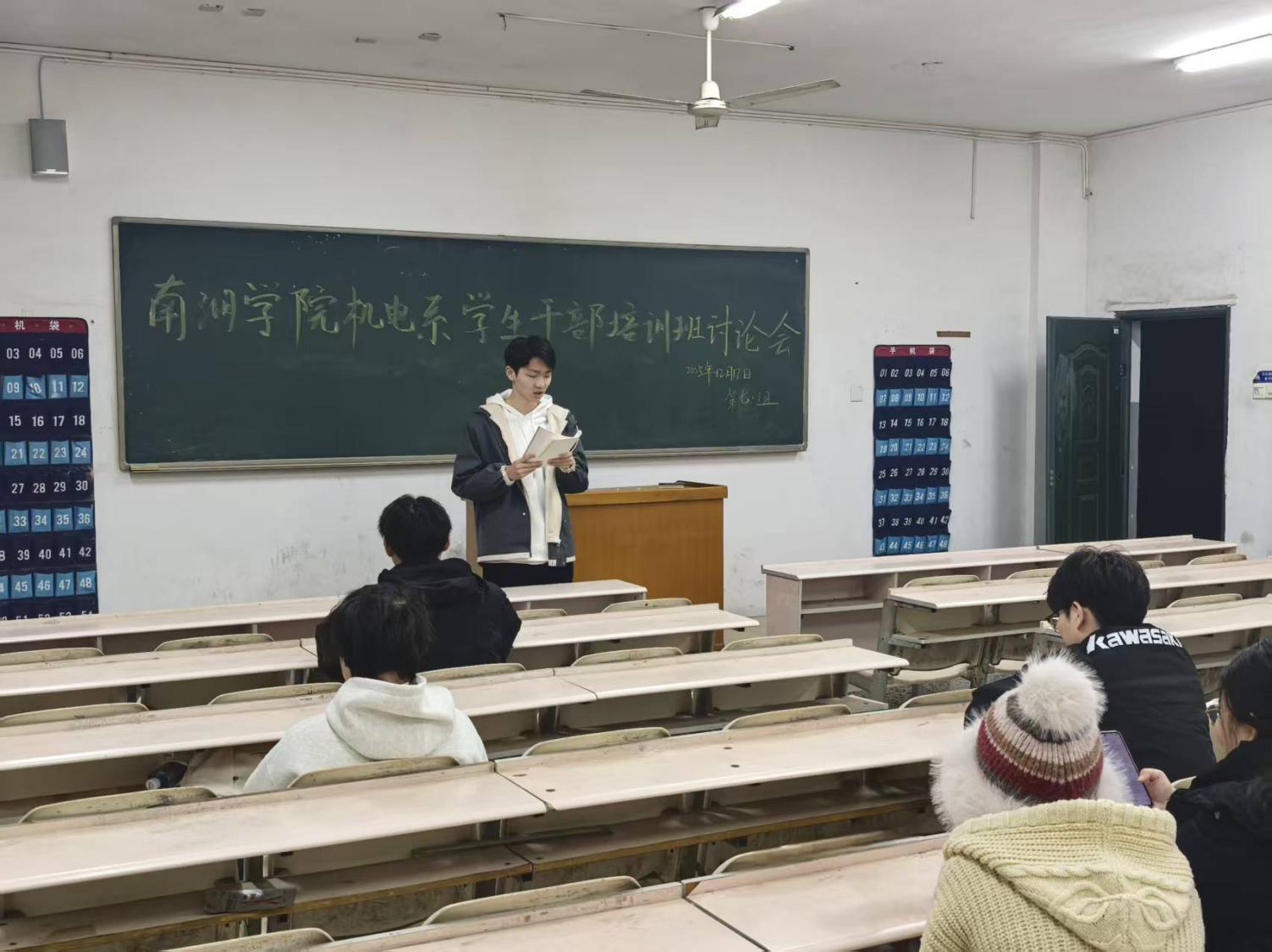 本次学生干部培训班是南湖学院机电系深化“创先争优”活动、加强学生干部队伍建设的重要举措。通过为期两天的集中学习与深入交流,学生干部们不仅提升了理论水平和工作能力,更增强了团队精神和集体荣誉感,为更好地服务同学、引领思想、推动工作注入了新的活力。展望未来,机电系将继续探索和优化学生干部培养模式,努力打造一支政治坚定、能力突出、作风优良的高素质学生骨干队伍,为实现学院事业发展目标贡献青春力量。(通讯员/王紫梦 编辑/杨抒 二审/喻立平 三审/李革新)