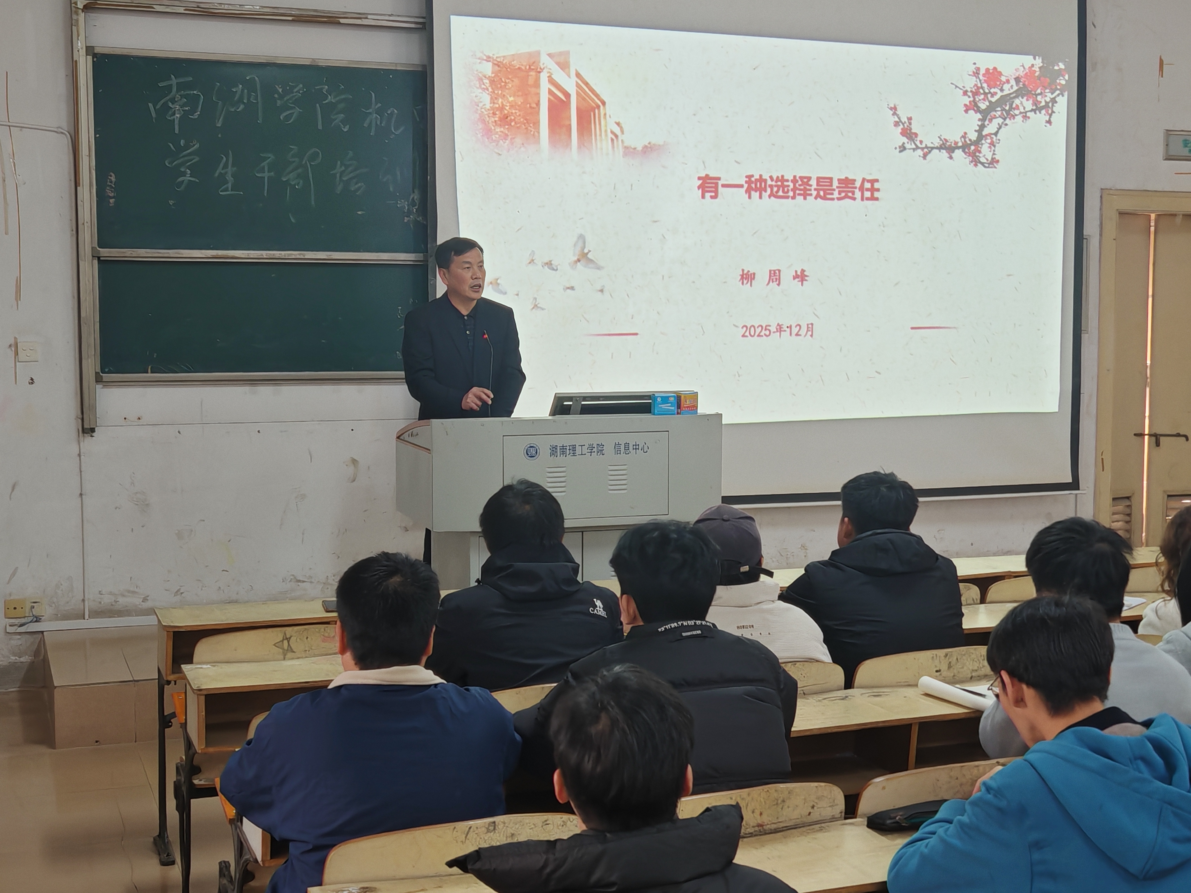 原南湖学院党委书记柳周峰围绕《有一种选择是责任》的主题,引导学生干部深刻理解责任意识的重要性。