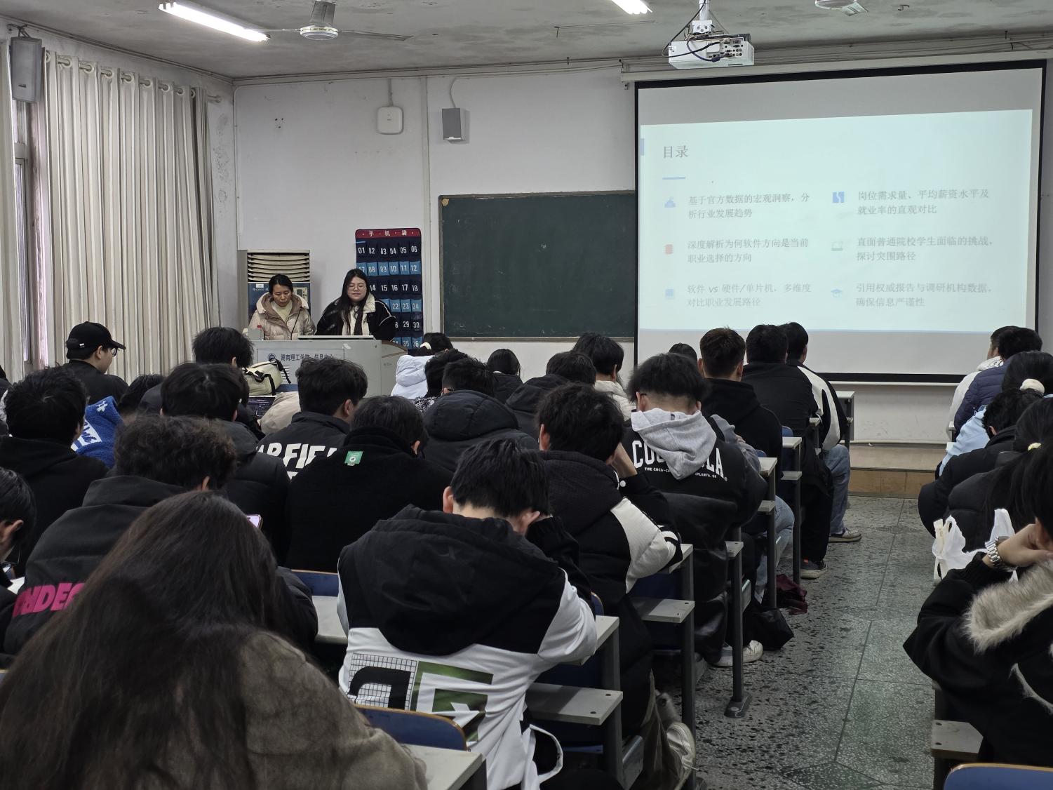分享会上,学长学姐们结合自身专业学习与职业规划经历,为同学们解答了专业选择、学习路径、项目实践与就业前景等核心问题。一是‌专业方向抉择。对比硬件与软件方向的发展出路,结合行业趋势与个人发展,为同学们分析软件开发领域的广阔前景与适配性。二是‌学习路径规划。针对C语言、C++、JAVA、PYTHON等编程语言的学习难点,以及数据结构等核心课程的攻克方法,学长学姐们分享了实用的学习技巧与避坑指南,帮助同学们理清学习重点。三是‌实践与就业指导。围绕简历项目经验打造、实习薪资行情、秋招准备要点等内容,学长学姐们结合自身求职经历,给出了极具针对性的建议,为同学们的职业发展指明方向。