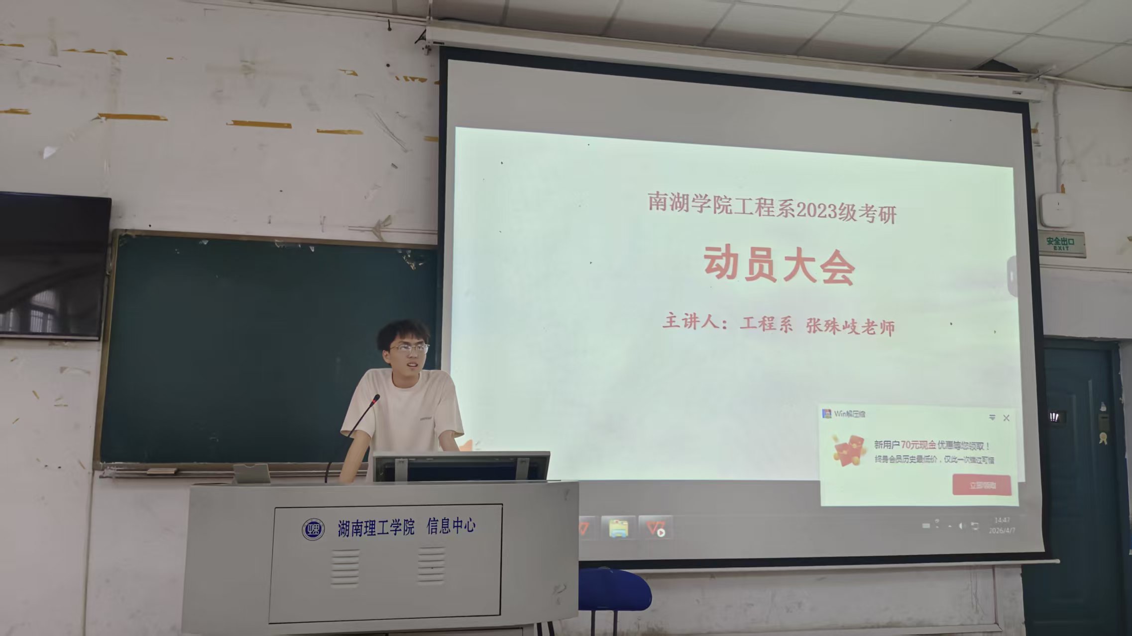 4月7日下午2点,南湖学院建筑与化学工程系在2T2教室召开2023年级大会暨考研工作启动会。会议围绕学期工作部署、学风建设、安全管理及考研备考指导展开,为同学们明晰发展路径、夯实备考基础。工程系2023级辅导员张殊岐主持会议,2026年考研上岸优秀学子代表及聚创教育王怡姝老师受邀参会,2023级全体同学参加。